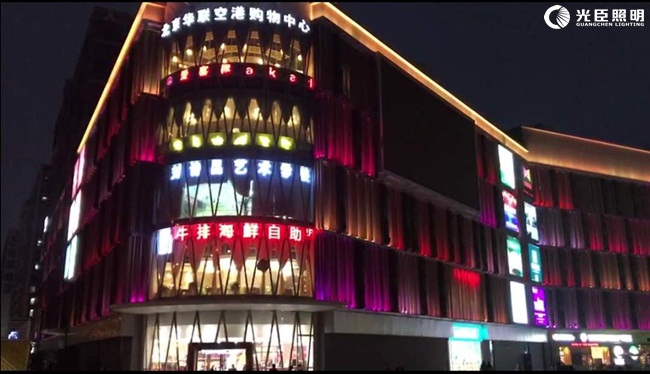 此次項目采用的是DMX512全彩大功率洗墻燈,使用電腦連機控制方案。施工前光臣工程師拿著樣品和控制器到現(xiàn)場展示,最終客戶喜歡這種極具呼吸感的不規(guī)則漸變效果。