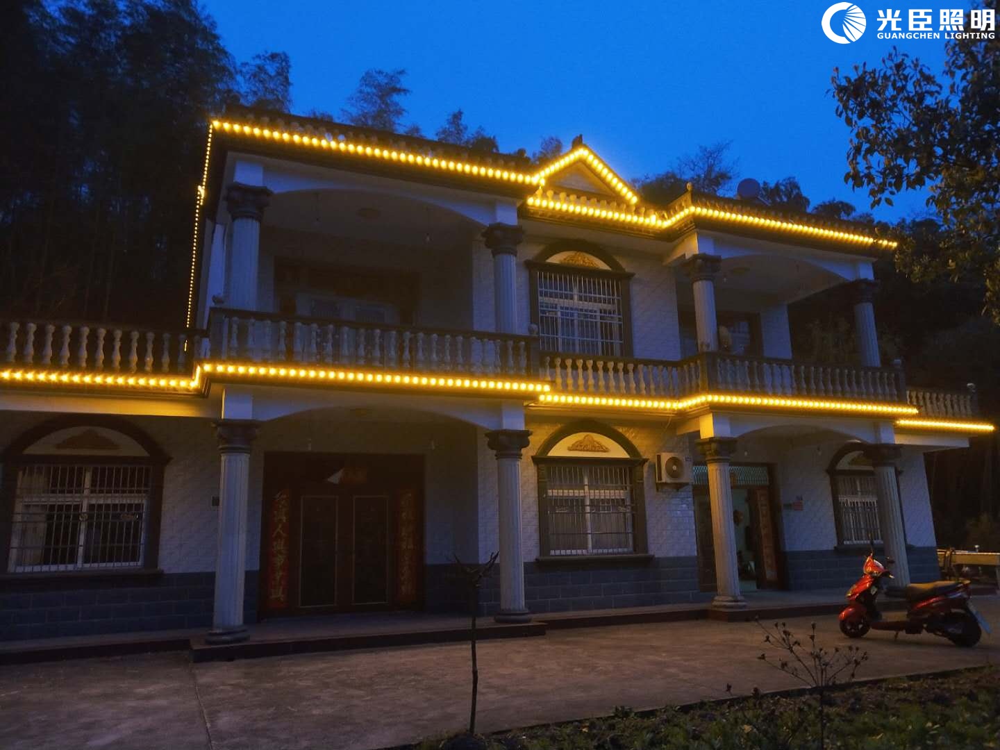 此次的項(xiàng)目是去年合作過(guò)一個(gè)地產(chǎn)樓盤蔡總自家房子亮化。通過(guò)上個(gè)項(xiàng)目,蔡總對(duì)我們產(chǎn)品質(zhì)量和服務(wù)都是豎拇指的。因?yàn)檫@次是鄉(xiāng)村的房子,蔡總那邊表示不要過(guò)于花哨,想要那種星星點(diǎn)點(diǎn)的感覺。有了上個(gè)項(xiàng)目的磨合溝通,業(yè)務(wù)員和蔡總這邊很默契,很快制定了方案,選定光臣直徑3公分點(diǎn)光源圍著樓體走一圈。燈光的色溫和布點(diǎn)位置與建筑形體、色彩和景觀空間完美結(jié)合,形成了極強(qiáng)的高端感受和靜謐氛圍。