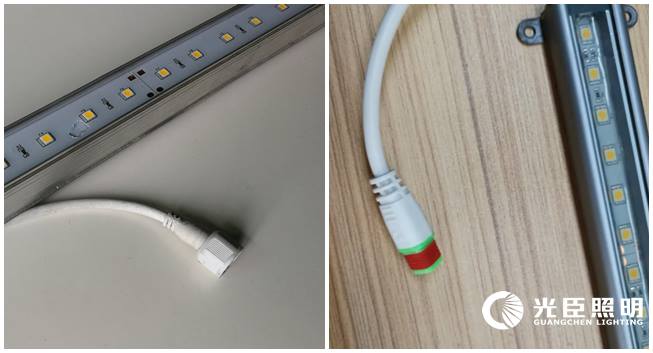 左為客戶樣品:對接線質(zhì)量差,防水效果不好 右為光臣產(chǎn)品:防水防寒對接線,防水圈嚴密