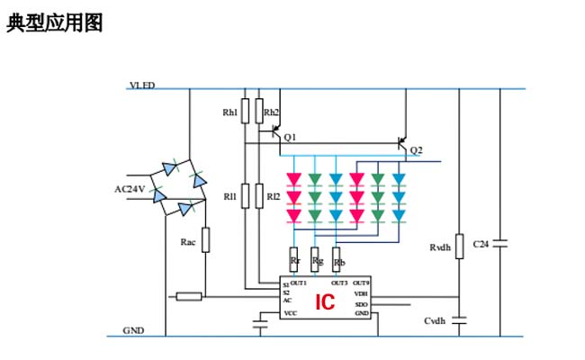 六段內(nèi)控護欄管通過驅(qū)動芯片(IC)控制,其輸入電源在12V到24V之間,可承受30V端口電壓,通過1/2掃描開關(guān)端口構(gòu)成18個通道顯示模式。工作時可以實現(xiàn)整體同步控制。