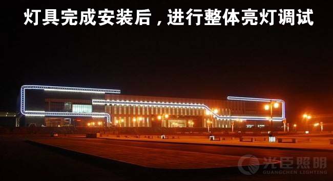 本次項(xiàng)目?jī)H運(yùn)用了2819線條燈作為亮化燈具,那么有朋友就有疑問了,中間部份是點(diǎn)光源吧?其實(shí)不然,中間部份的效果是短尺寸的2819線條燈做成的。一眼望去就像一條通往著全國(guó)各地的鐵路一樣,此亮化效果的寓意相當(dāng)特別。